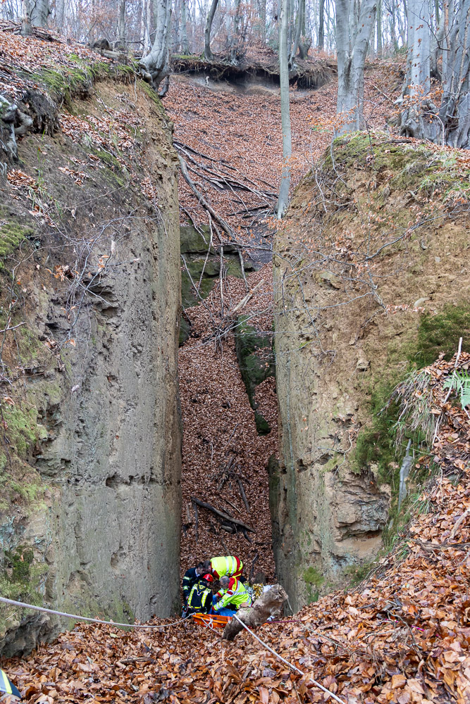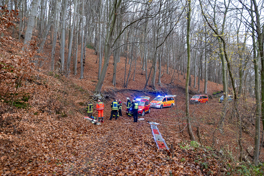 Auch in einem Mittelgebirge, wie dem bis 336 m hohen Wesergebirge kann es zu Unfällen kommen. Einge Hänge sind verdammt steil. Sogar Klippen sind dort zu finden.