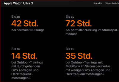 Nach drei Tagen, bzw. 72 Std. hatte meine Ultra 3 noch 24 % Akkukapazität.