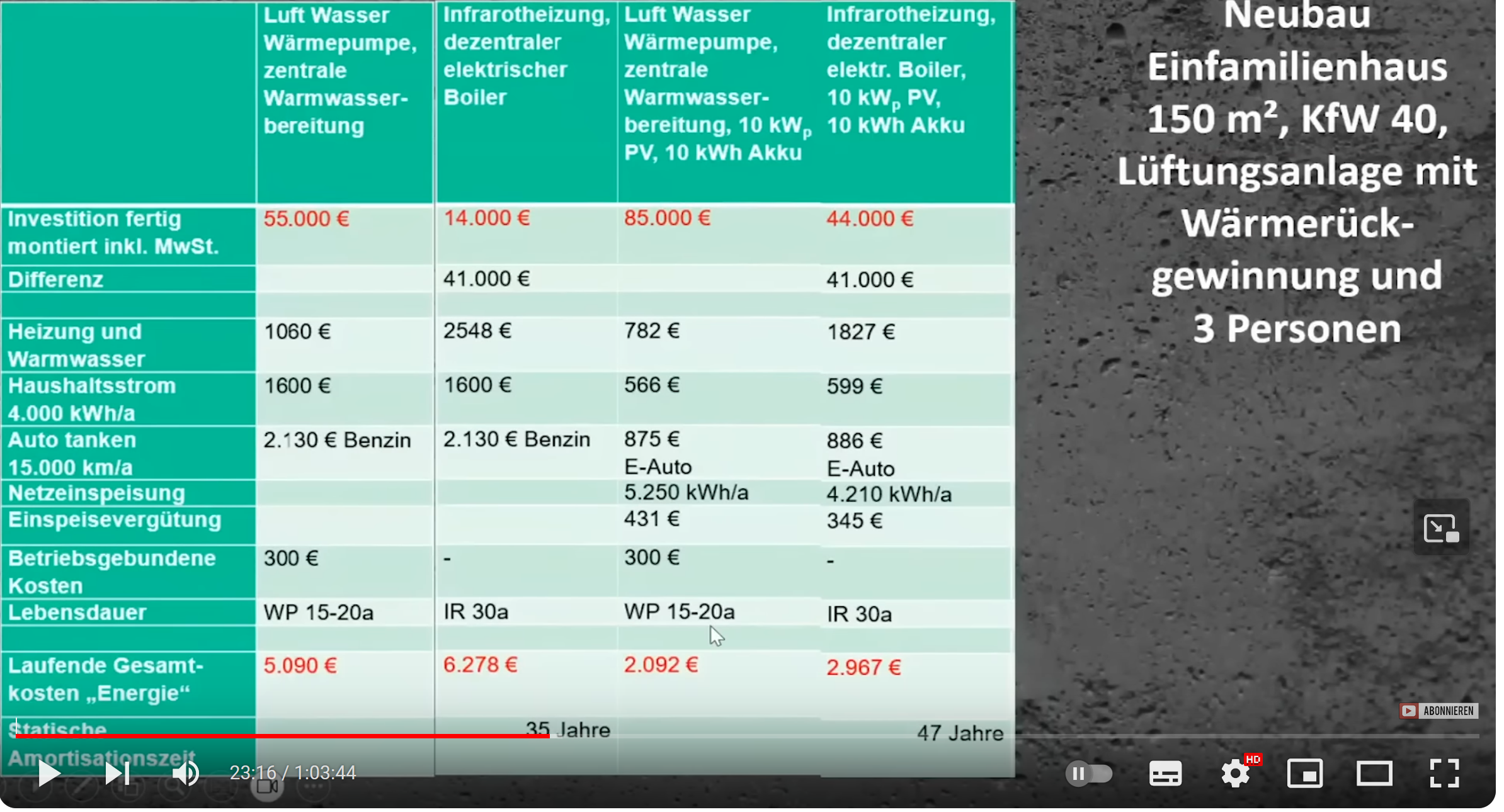 Kommentar: Mit 55.000 Euro sind die Kosten für eine fertig montierte Wärmepumpe zu hoch angesetzt. Soll die Infrarotheizung in dem Vergleich evtl. besser als die Wärmepumpe abschneiden ?