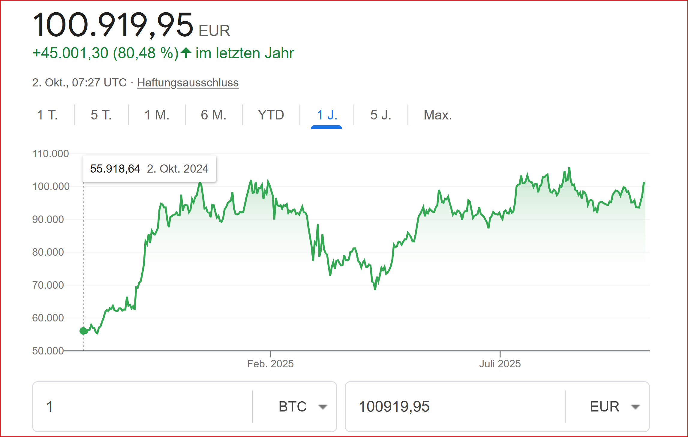 Bitcoin, Gold und Silber gehen steil admin 2. Oktober 2025 Boerse, Panorama Keine KommentareBitcoin – quo vadis ? Gold steigt, denn die Unsicherheit wächst aufgrund hoher Verschuldung Silber Achtung: Alles ohne Obligo! Keine Anlageberatung! Keine Empfehlung, Keine Haftung!! Just4fun!!! Related Posts XBUS – Startpreis: 17.380,00 € Baumfaellung einer 30 m hohen Buche Powerstation im Campervan ein Irrtum !!! Notfallrucksack: Was sollte man in einer Notlage in der Wohnung griffbereit haben? Flucht in Sachwerte – „Dax 30.000, Bitcoin 100.000, Gold wird alles outperformen“ Heiss wie Frittenfett Ist Trustedshops.de seriös ? Die 7 Todsünden beim Bootskauf – UNBEDINGT VERMEIDEN ! Wechsel von Android zu iPhone: Erfahrungsbericht aus der HölleLeave a Reply Cancel Reply Meinen Namen, meine E-Mail-Adresse und meine Website in diesem Browser für die nächste Kommentierung speichern. Current ye@r * Leave this field empty