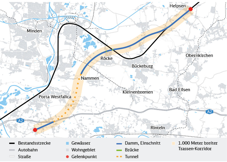 Die Bahn plant einen Ausbau / Neubau der Bahnstrecke Hannover – Bielefeld. Die alte Strecke ist zu kurvenreich (besonders in Minden), um sie schnell befahren zu können. Daher ist nahe meines Wohnortes Porta Westfalica eine Untertunnelung des Wesergebirges geplant. Ich selbst wäre also nicht betroffen, wobei ich aus Altersgründen (79) den Streckenneubau ohnehin nicht mitbekommen würde.