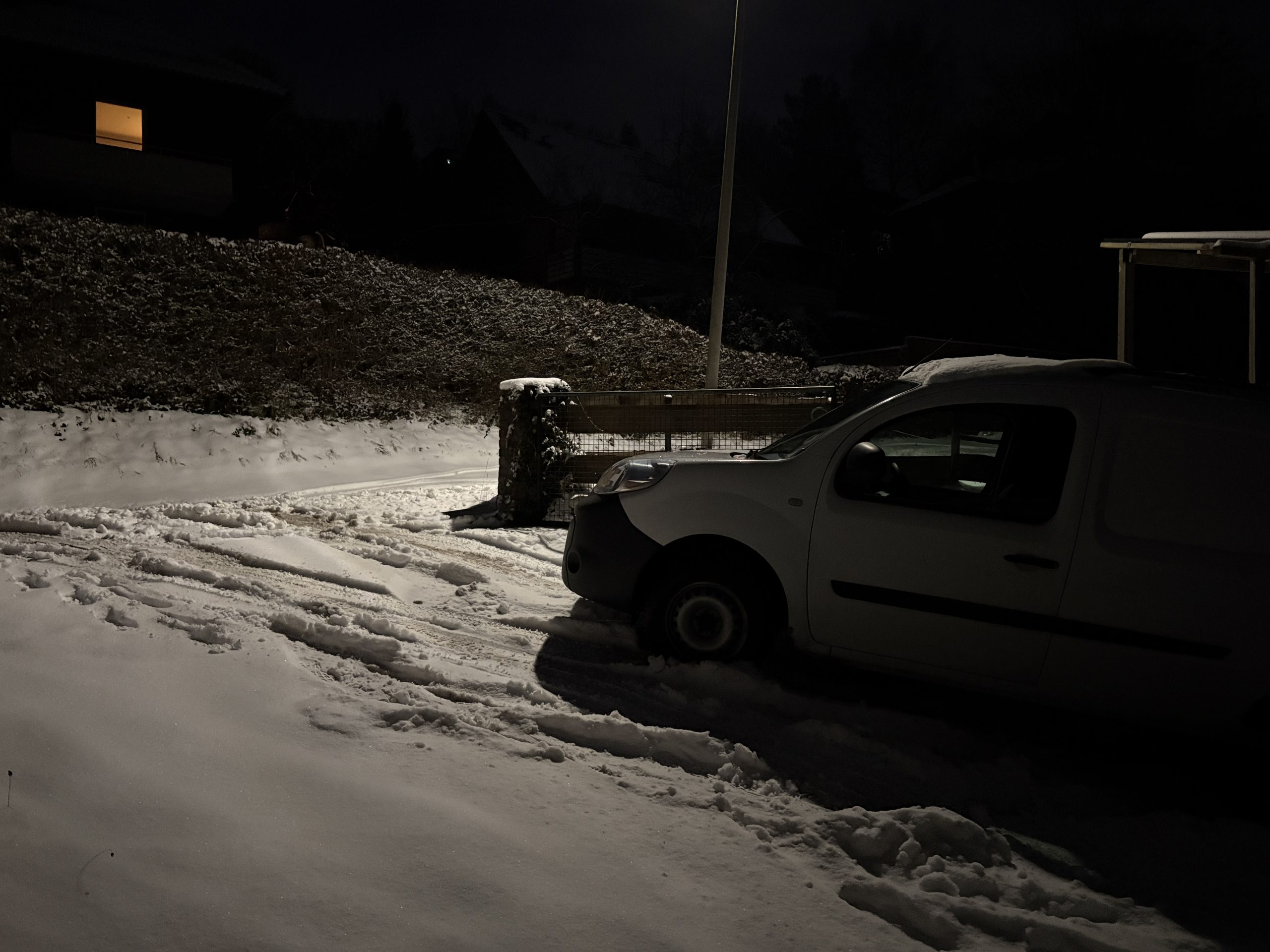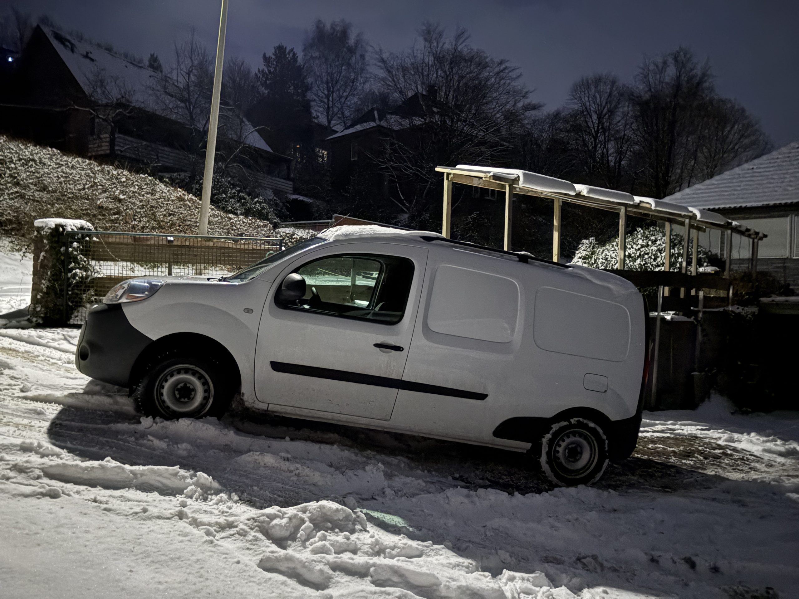Meine Grundstückszufahrt ist verhältnismässig steil. Im Gegensatz zu früheren Fahrzeugen habe ich bisher keinen Schnee räumen müssen, denn der Kangoo schafft die Steigung mit etwas Anlauf ohne grössere Probleme.
